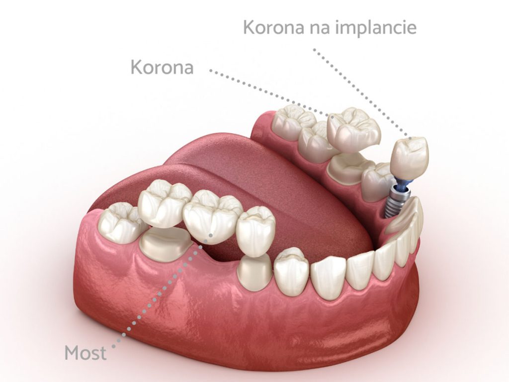 W przypadku pojedynczych braków i zdrowych zębach sąsiednich, doskonałą alternatywą dla mostu są prace na implantach.